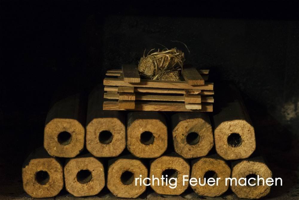 Allgemein zu Pini Kay Holzbriketts: Hingegen zu anderen Holzbriketts, die mit einem Druck von ca. 300-400 bar schon ordentlich gepresst werden, wird bei Pini Kay Briketts das Material mit ca. 1000 – 1100 bar zusammengedrückt. Je nach Hersteller der Pressen können die Formen etwas variieren. Durch den hohen Druck entsteht auch eine enorme Reibungswärme, wodurch die Briketts außen eine sehr glatte, schwarz-braune Schicht aus verbrannten Holz haben. Das Loch in der Mitte ist ebenfalls typisch für diesen Brikett-Typ. Die Briketts brennen sehr stark (auch durch die Zugwirkung des Lochs), sind sehr formstabil und geben eine sehr intensive Wärme ab. Das verwendete Hartholz sorgt für eine entsprechend lange Glutdauer.